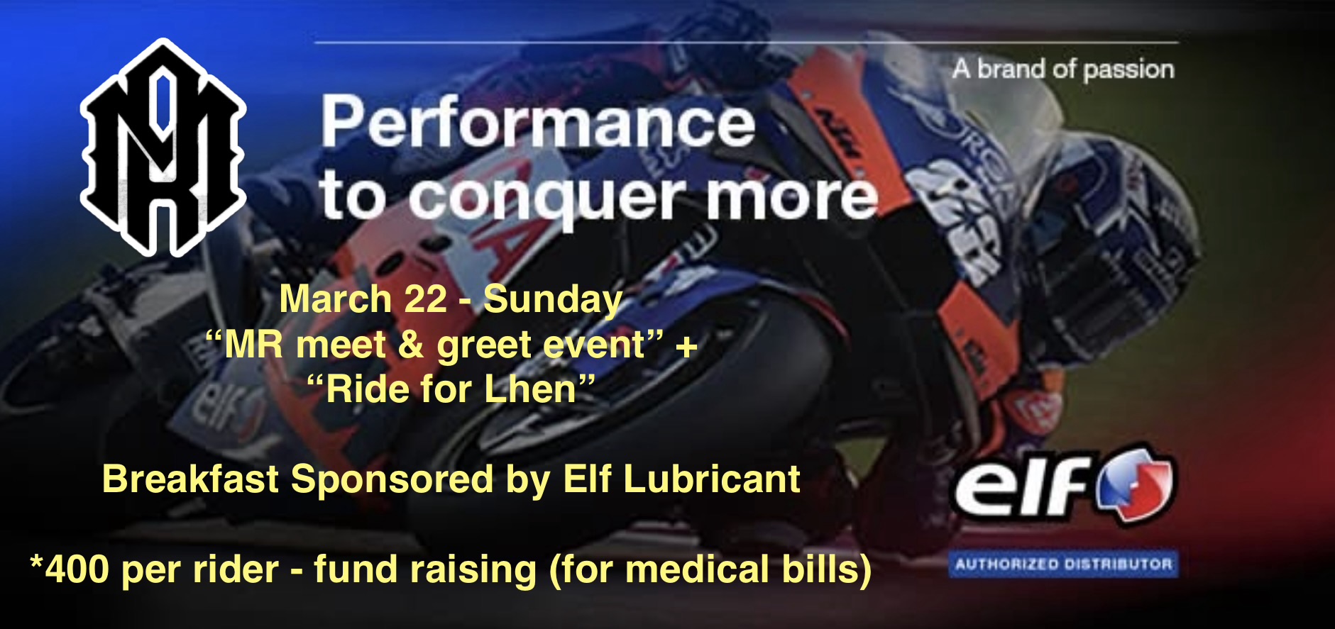 Breakfast sponsored by Elf Lubricant inviting “Guest Riders” with at least 3 rides to join this event and have your status converted to official member 😍 program: for Mar 22 Elf Lubricant presentation MR Meet and Greet MR auction- Fund raising 😍 |